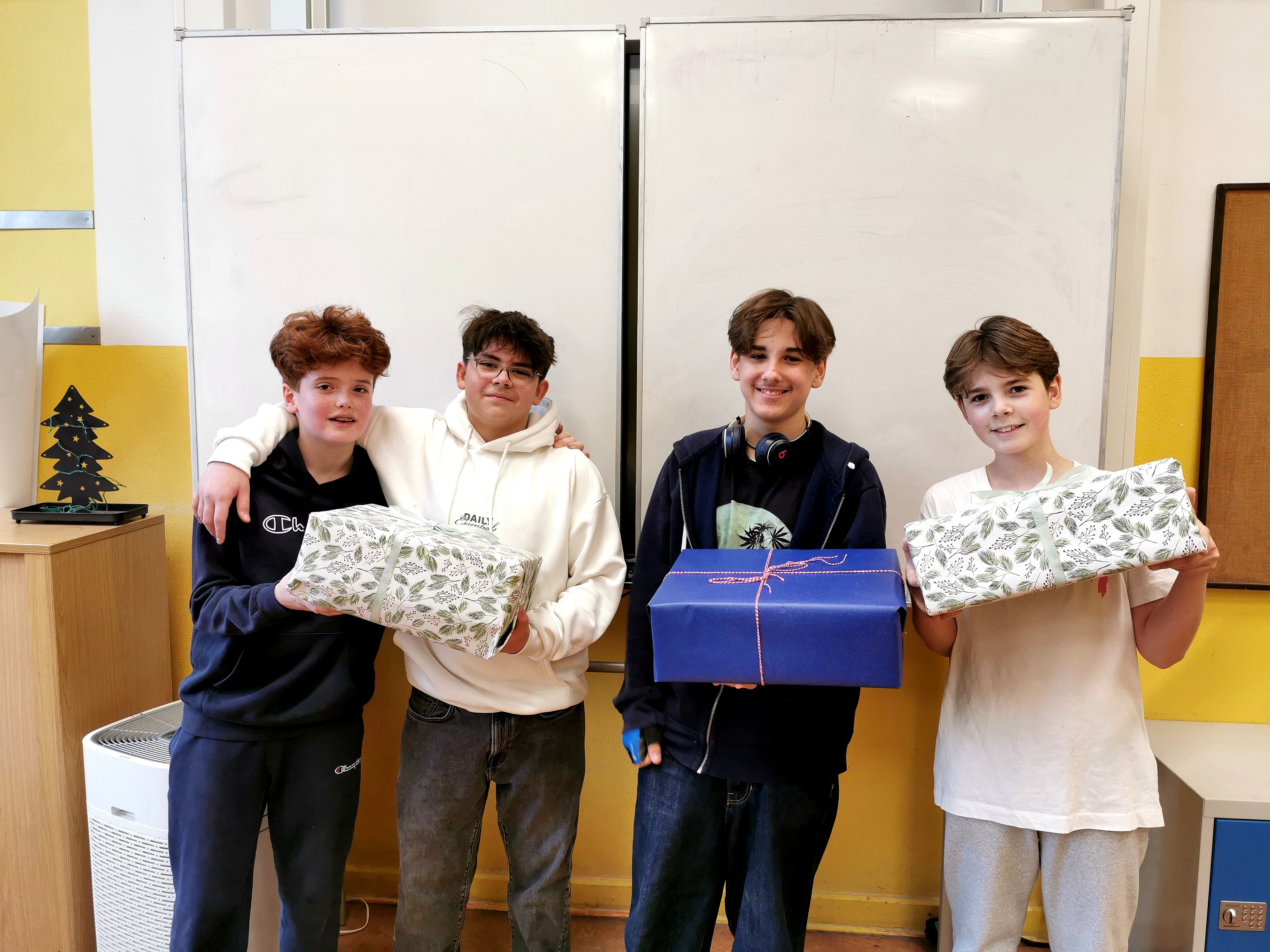 Dieses Jahr haben die Schülerinnen und Schüler der 8. und 9. Klassen unserer Schule an der Aktion „Weihnachtspäckchen für Kinder in Not“ der Organisation Zukunftkinder teilgenommen. Mit großem Engagement spendeten sie Süßigkeiten, Hygieneartikel, Mützen, Handschuhe, Plüschtiere und Spielzeug. Liebevoll gestalteten sie Karten, sortierten die Gaben und verpackten sie sorgfältig in Kartons. Es war schön zu sehen mit wieviel Empathie, Mitgefühl und Spaß die Schülerinnen und Schüler bei der Sache waren.